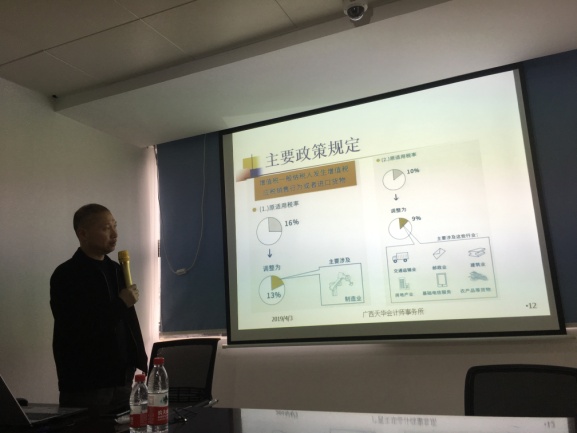 2018年12月中央經(jīng)濟工作會(huì )議、2019年政府工作報告均強調實(shí)施更大規模的減稅,為適應當前形勢,廣西天華會(huì )計師事務(wù)所在2019年4月3日下午組織財務(wù)人員、業(yè)務(wù)人員學(xué)習近期稅收優(yōu)惠政策,緊扣財政部、稅務(wù)總局《關(guān)于實(shí)施小微企業(yè)普惠性稅收減免政策的通知》(財稅【2019】13號)、財政部、稅務(wù)總局、海關(guān)總署《關(guān)于深化增值稅改革有關(guān)政策的公告》(2019年第39號公告)等文件進(jìn)行學(xué)習。