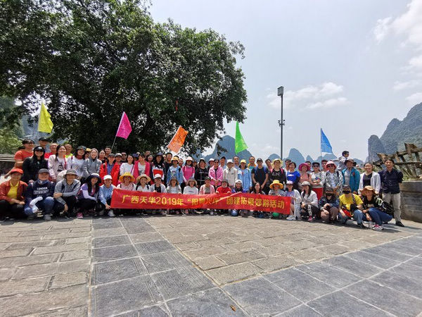 為提升公司團隊凝聚力,讓員工從忙碌的工作中適當放松,調節身心,緩解工作壓力,更加積極樂(lè )觀(guān)的心態(tài)投入到工作當中,廣西天華公司于5月10—11日組織員工到陽(yáng)朔興坪開(kāi)展團隊拓展郊游活動(dòng)。