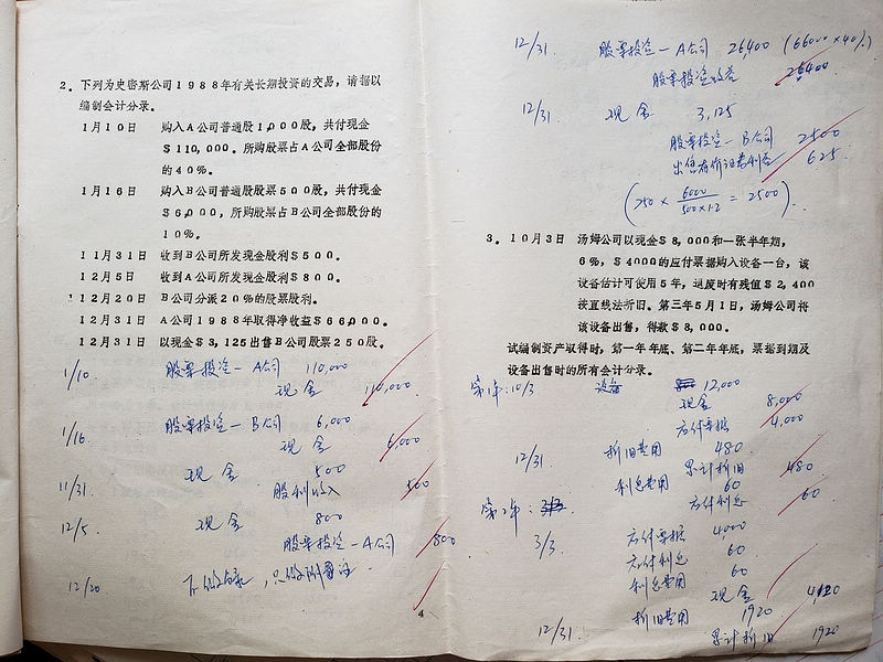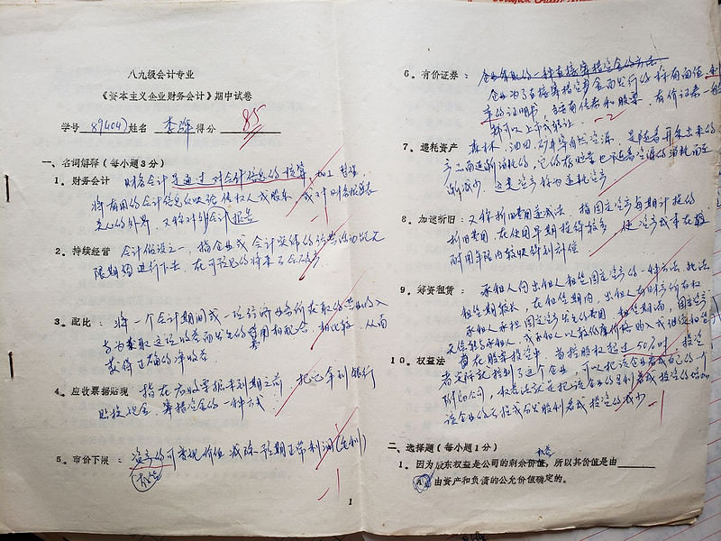 周六在家收拾整理書(shū)柜,偶然找到了一份我大學(xué)時(shí)代的考試卷,是《資本主義企業(yè)財務(wù)會(huì )計》期中考試的卷子,這不禁勾起我對三十年前學(xué)生時(shí)代的回憶。